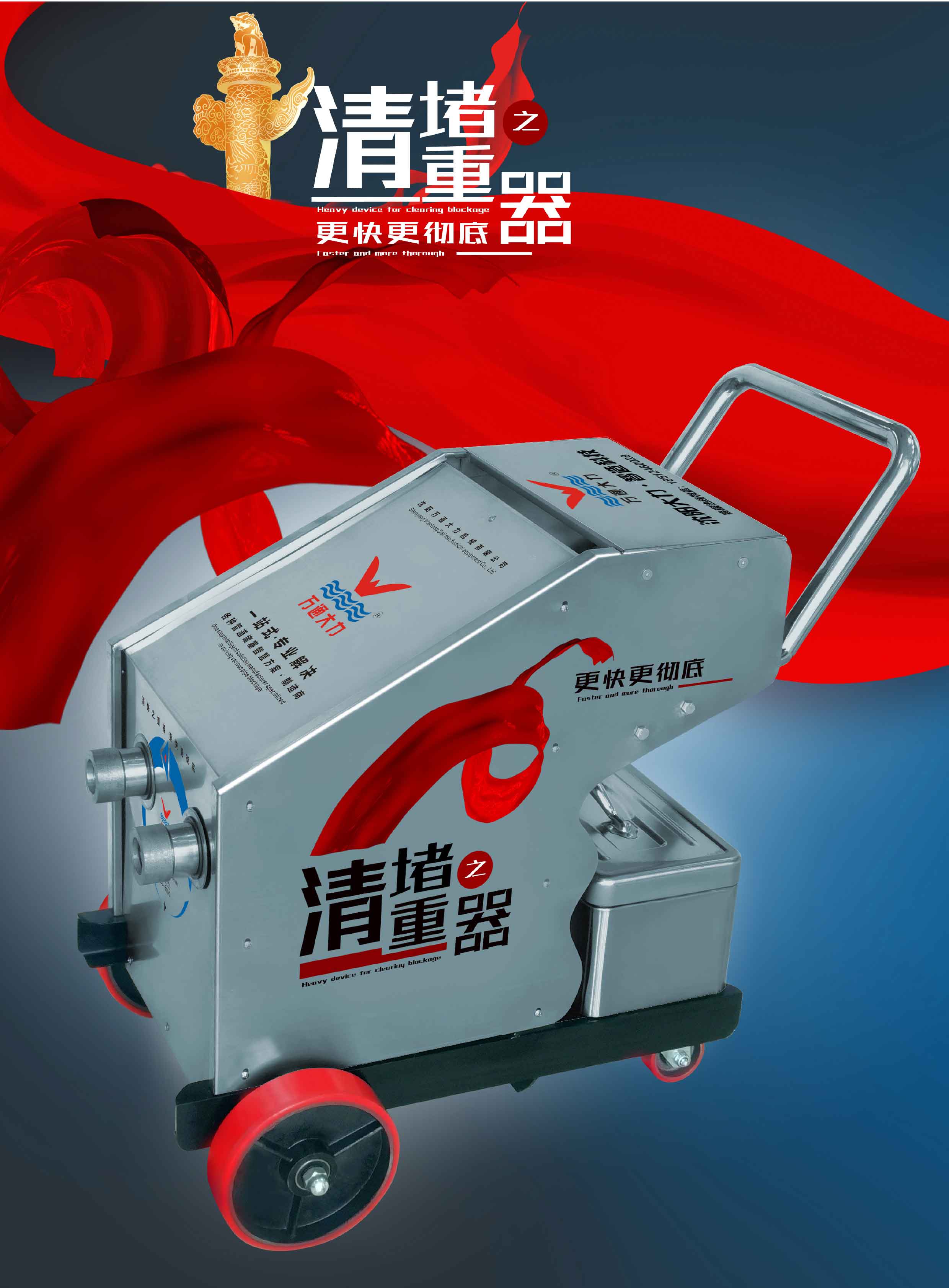 沈陽(yáng)萬(wàn)通大力機(jī)械有限公司是智能數(shù)碼地?zé)崆逑礄C(jī)、新型快速動(dòng)汽清洗機(jī)、管道疏通機(jī),高壓清洗機(jī)、管道清洗機(jī),鍋爐洗管機(jī) 中央空調(diào)清洗機(jī),高壓水射流清洗機(jī)。冷凝器清洗機(jī)、空氣預(yù)熱器清洗機(jī)、大型市政管道疏通車(chē)和試壓泵的設(shè)計(jì)、制造和銷(xiāo)售的專(zhuān)業(yè)型企 業(yè)。